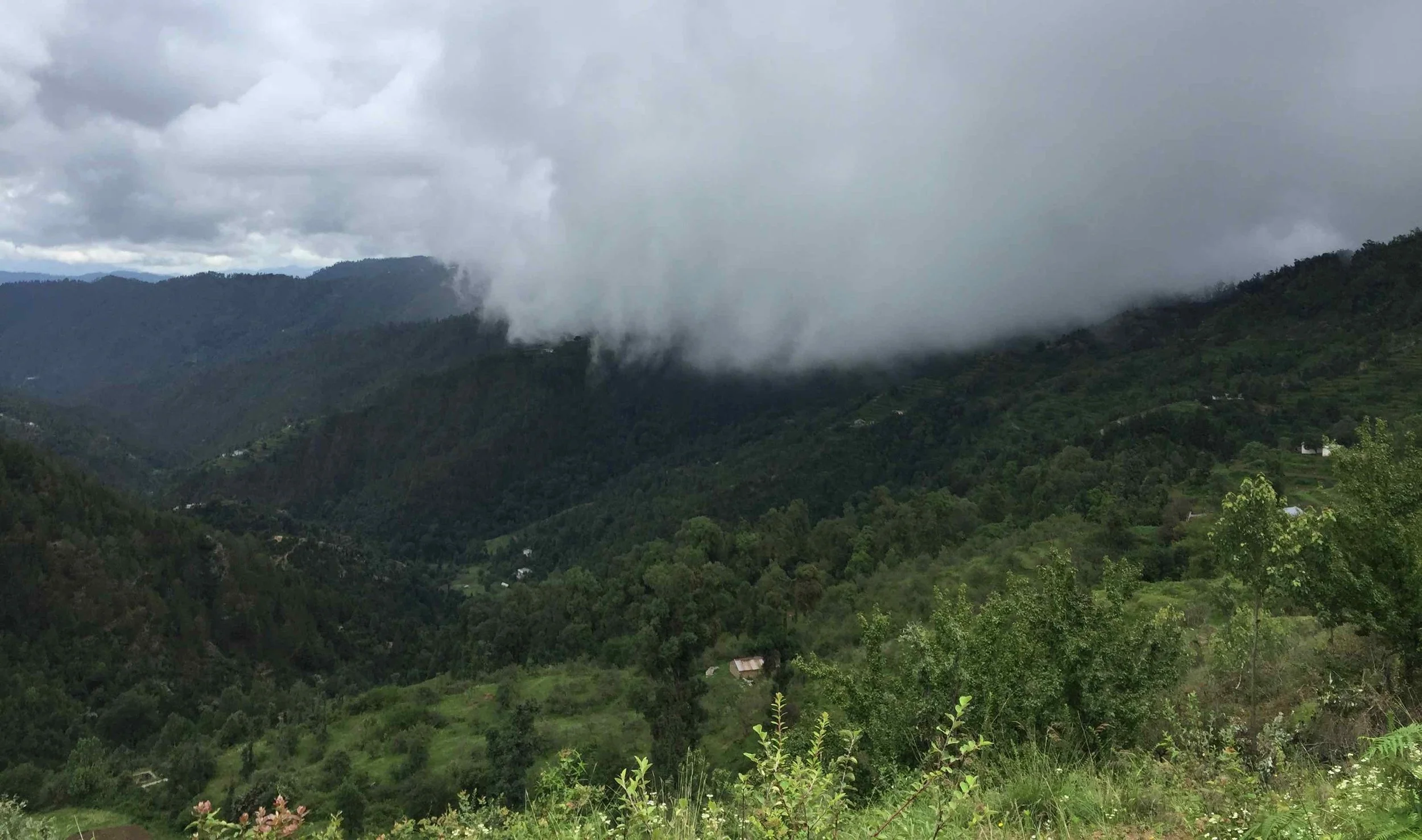 past the silver lichens on the peaches and pears of Dhanachuli…